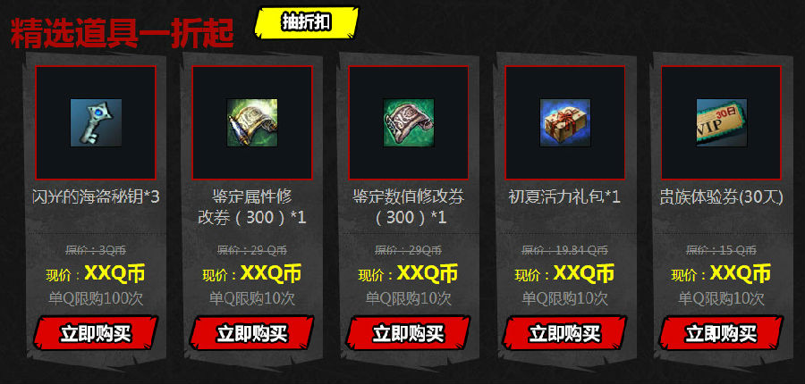 登录本页面的所有玩家可以参与精选道具一折起购的活动;