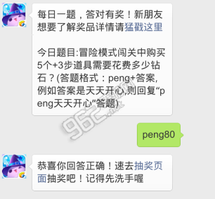 今日题目:冒险模式闯关中购买5个+3步道具需要花费多少钻石?