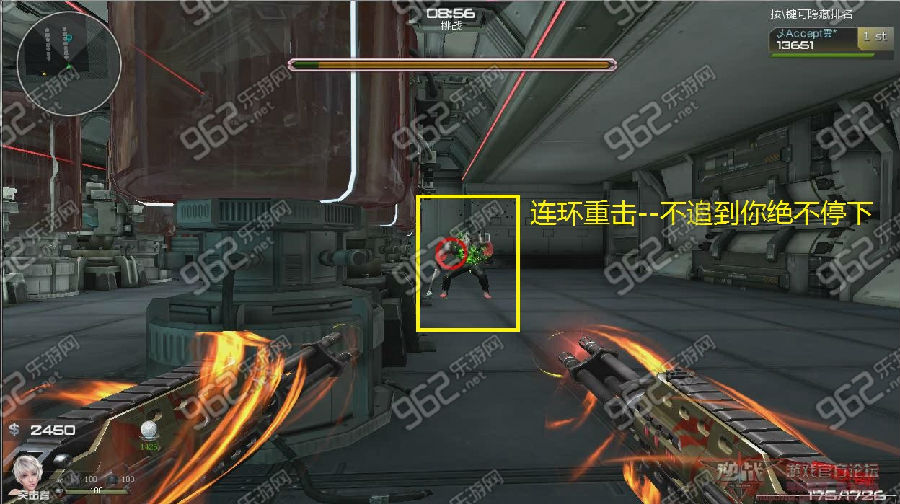 在进入地图之后,我们的老朋友会一直追着我们不放,这个时候我们和他绕圈圈就好了,如果各位玩家拿的是机枪或冲锋枪的话,这个技能段打手是追不上我们的呦,可以尽情的输出,不过还是尽量攻击头部的好,毕竟伤害摆在那里。