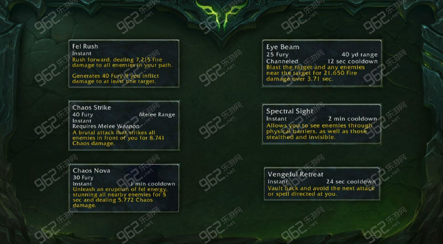 [乐游网导读]最近魔兽世界7.0版本新职业恶魔猎手曝光,想必大家都对这个英雄比较了解,新职业还是非常炫酷的,到底恶魔猎手有哪些技能呢,下面介绍大家可以了解一下。