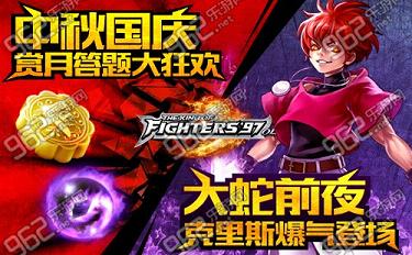 活动内容:全新格斗家克里斯登场,流淌着大蛇之血的少年即将加入《拳皇97OL》!参加游戏内的“中秋月饼”活动和“百科达人”活动即有机会获得“克里斯的紫炎火种”,收集火种即可解锁S+级格斗家“炎之克里斯”!飞扬吧,我的火焰!