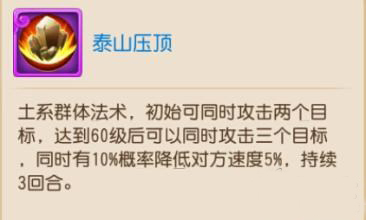 看起来泰山压顶实际上是一个很实用的技能,因为它能够很有针对性地降低对方至少前两个高速单位,但另外一方面我们也要看到,由于目前法宠主要走龟速路线,所以实际上哪怕能起效也只能影响两个回合,再加上如果对方和我方速度相差很大,那么泰山压顶即便触发效果也未必有价值。