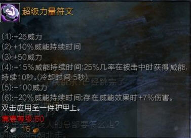 【在这里强烈推荐力量符文,目前版本的力量符文改得属性强到爆,加7%全伤,45%威能持续时间;】
