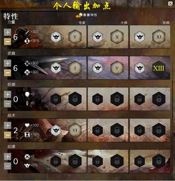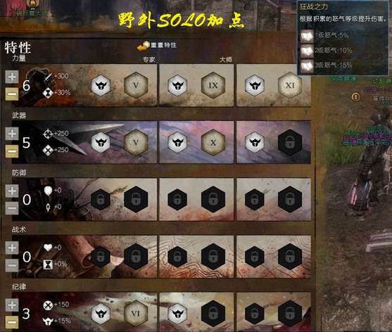 【搭配一:6点力量+5点武器+3点纪律】(野外SOLO搭配法)