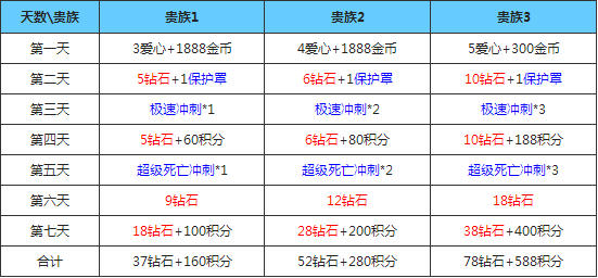 特别说明:贵族特殊登录奖励,是在原本的登陆奖励之上附加的哟,两者并不冲突。