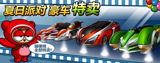 夏日燃情赛场,加入《跑跑卡丁车》夏日派对,尽享豪车疯狂特卖。