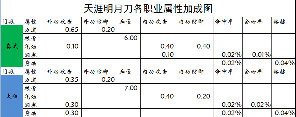 在很多网络游戏中不同职业门派的属性其实都不一样,天涯明月刀ol也是如此,可能很多玩家对于职业的属性加成比较感兴趣,下面是详细图解分享。