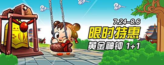 北京时间7月24日到8月6日,玩家只要在此期间内购买人气道具“黄金神钟”,即可享受买一送一的超值回馈,目前游戏内黄金神钟1个的价格是38游戏币,100个是2850游戏币。