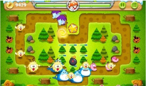第28关额外任务有(1)使用魔法球消灭10个怪物;(2)关卡中炸弹星数量不超过2个;(3)60秒内找到12个藏在道具中的玩具飞机。可供选择炮塔仅有炸弹星,初始有999个金币可用。本关地图中,有树木、大松树、瓢虫、石头、树根等道具,用于建造塔防位置集中在怪物出口处、地图左下角和右下角。