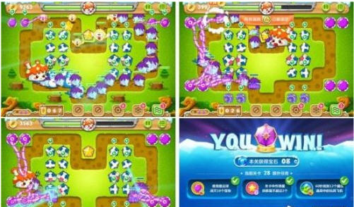 本关手动安装炮塔最多2个炸弹星,主要靠升级隐藏炮塔提升攻防实力,才能消灭所有怪物,顺利获得道具全清、金萝卜和钻石全部成就。