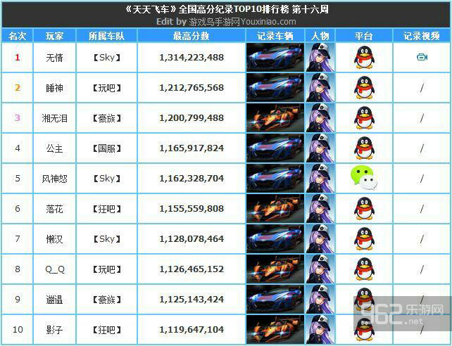 第十六周全国跑分排名