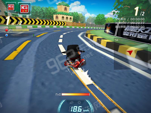 继棉花糖9推出之后,《跑跑卡丁车》再推一款经典车系“游侠”的9代车版本。车身鲜艳的红色除了映衬着国庆的喜庆气氛外,也象征着它电光石火般的速度!在棉花糖9的基础上,除了保留9代车独有的尾流加速功能,游侠9极大的增加了最高速度和竞速赛强化110%启动加速等特殊能力。无论是速度还是气势,都绝对HLOD住全场!