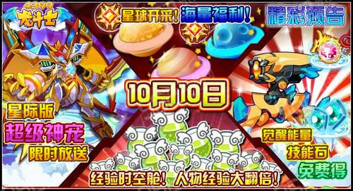 [乐游网导读]《龙斗士》官方公布了版本更新,即将在不久的将来更新一个星际版超级神宠活动。小编表示这次肯定又有超级神宠可以获取,还是蛮不错的!